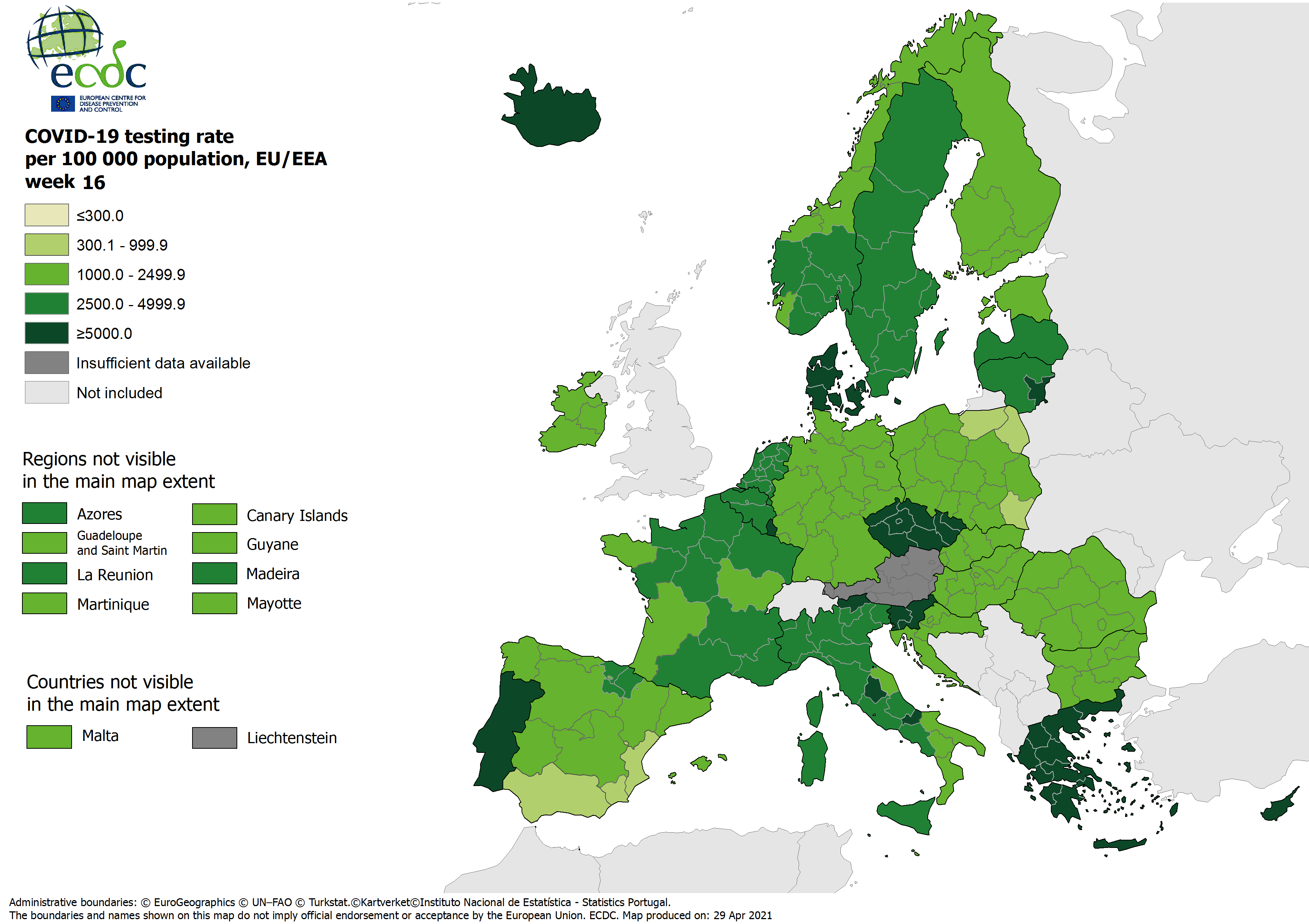 Testing rates per 100 000 inhabitants, updated 29 April 2021, week 16