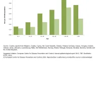 The notification rate in 2014 was lower than in 2013 (0.62 cases per 100 000 population) and in 2012 (0.52 cases per 100 000 population) in most of the reporting countries, except in Finland, France and Norway, where the rate was stable or slightly increased. In 2014, Greece reported its first case since the start of reporting in TESSY.
