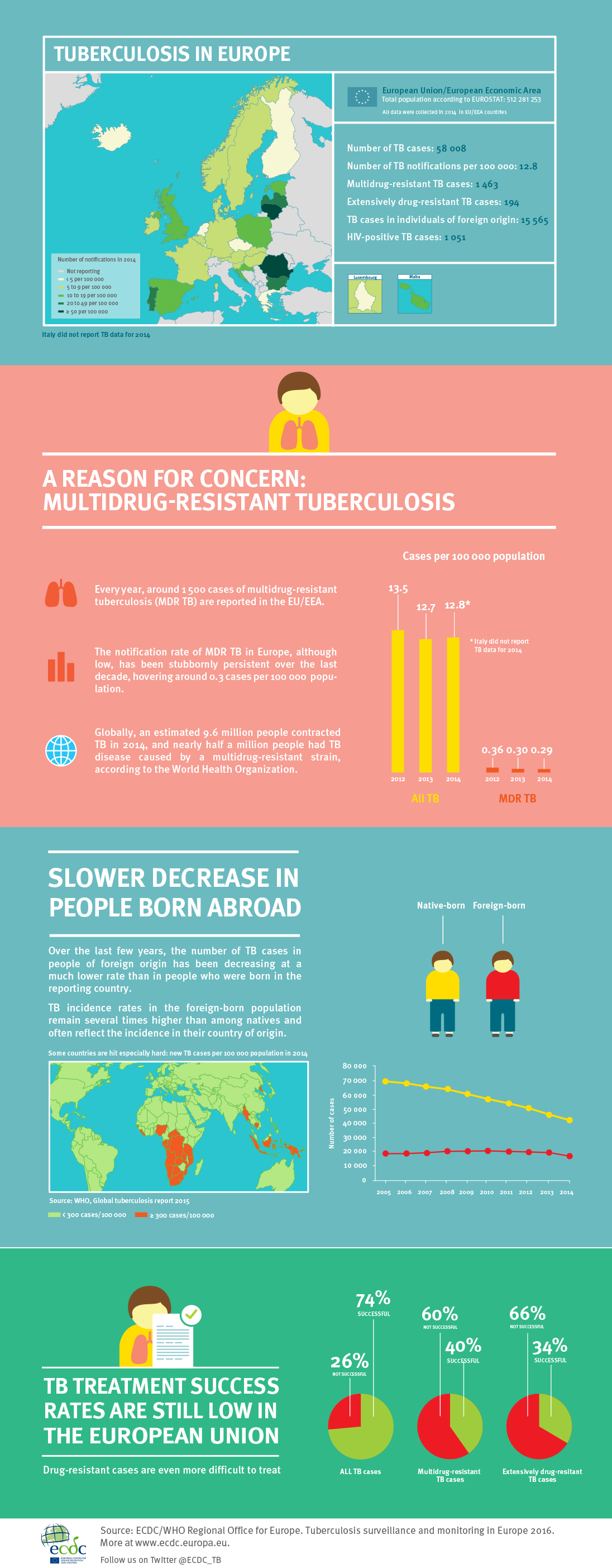 This infographic shows the tuberculosis situation in Europe based on data from the 2016 surveillance report