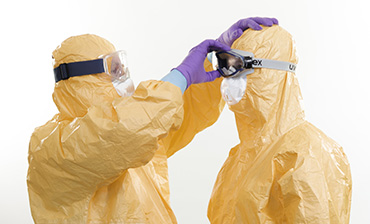 The scope of the tutorial is to improve the protection of staff dealing with infectious diseases of high consequence (IDHC). It addresses both current risks from viral haemorrhagic fevers and strengthening preparedness for future health threats posed by novel pathogens with either an airborne or a viral haemorrhagic fever (contact/droplet) mode of transmission. Accordingly, different options for PPE components and processes are presented. These can be adapted to the specific disease pattern and healthcare setting.