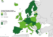 Vaccination coverage for the first doses of measles and rubella containing vaccine by country, EU/EEA, 2018