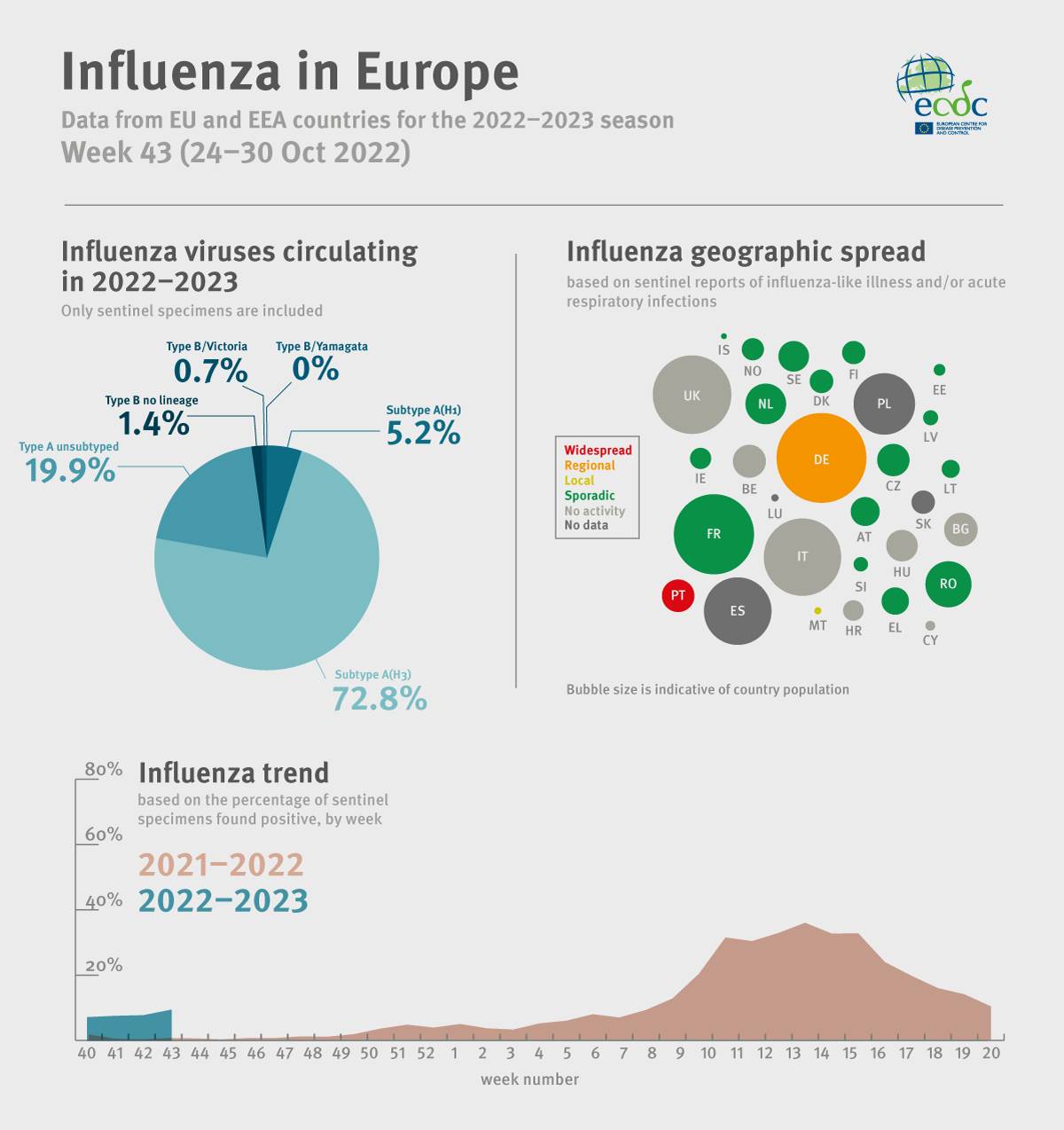 In collaboration with WHO Regional Office for Europe, ECDC monitors and reports on influenza activity in Europe on a weekly basis throughout the flu season.