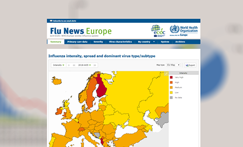 Influenza activity was widespread in the majority of reporting countries. Overall, 49% of individuals sampled from primary healthcare settings tested positive for influenza virus, a slight decrease compared to the previous week (51%). Both influenza virus types A and B were co-circulating with a higher proportion of type B viruses. Differences in proportions of circulating influenza virus types and A subtypes were observed between countries. The majority of severe cases admitted to non-ICU hospital wards were adults infected by influenza type B viruses. Half of severe cases admitted to ICU were adults infected by influenza type A viruses. Based on data provided by 20 EU countries to EuroMOMO, excess mortality from all causes has elevated significantly over the past months in the south-western part of the European region, but this increase seems less in some countries.