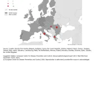 In Romania, cases were reported from counties in the south-east and the centre of the country, as well as from the capital, Bucharest. In Hungary, cases were reported across the country; this was also the case 2012.