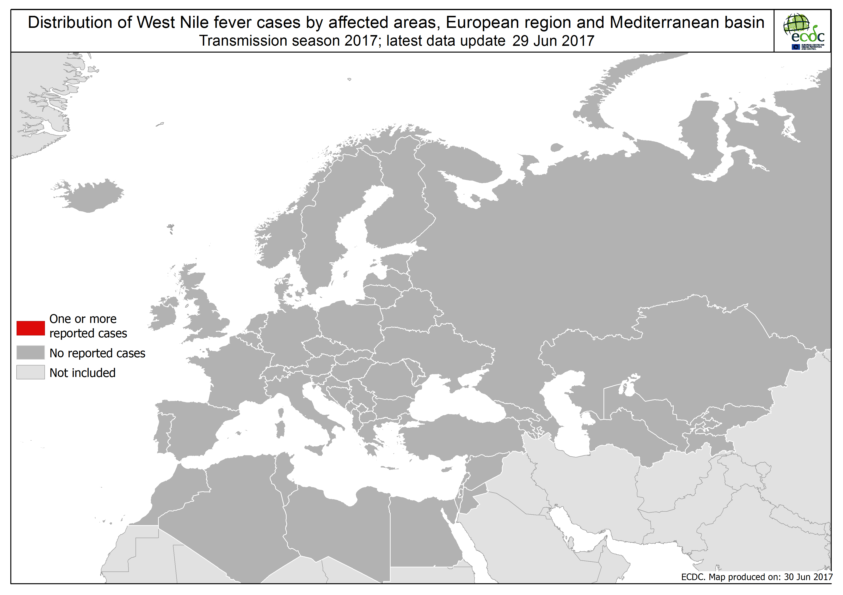 West Nile fever in Europe in 2017; updated 30 June Map 30 June 2017 West Nile fever in Europe in 2017 West Nile fever in Europe in 2017 English (211.97 KB - PNG) Download