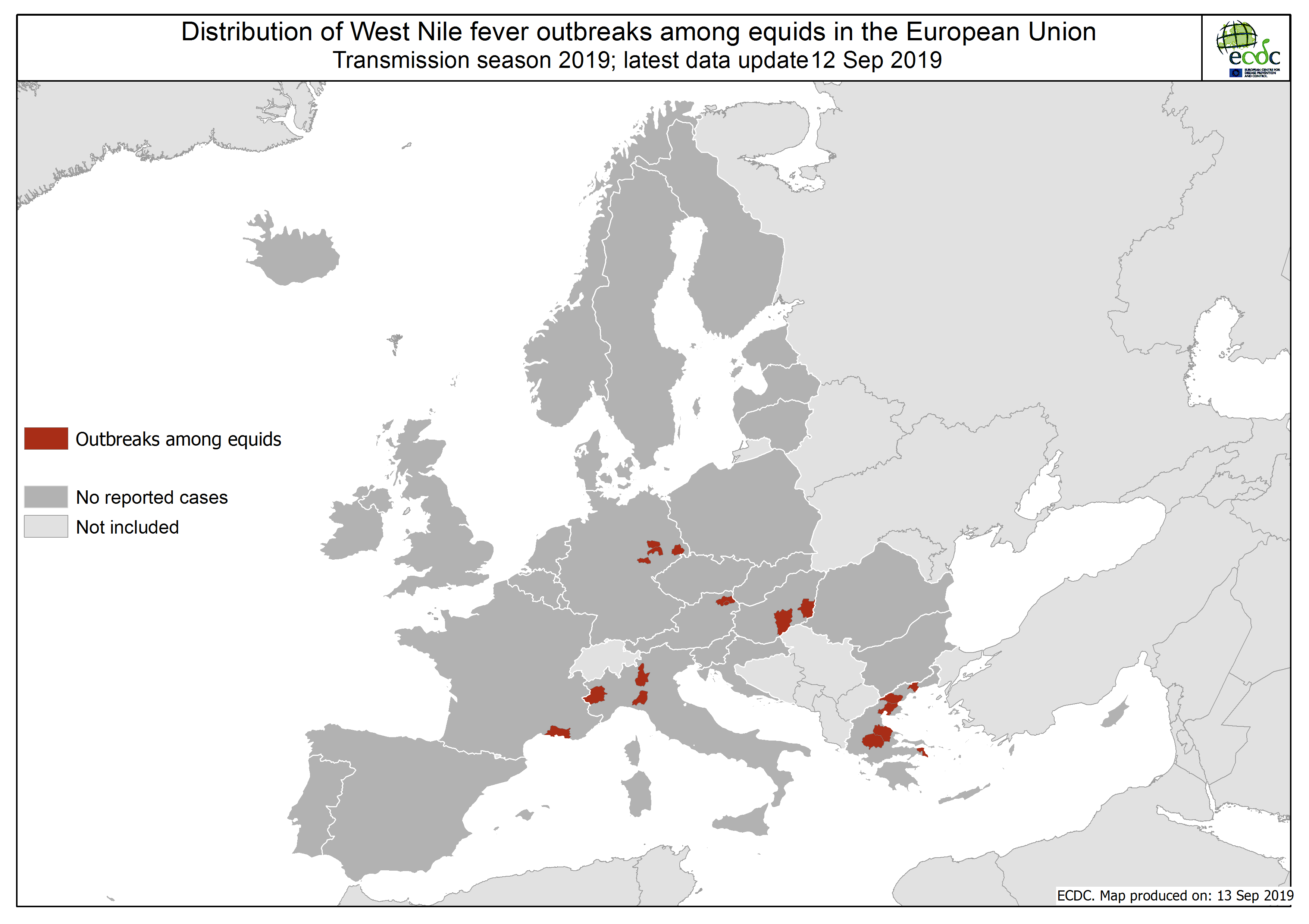West Nile virus in Europe in 2019 - equine cases, updated 13 September