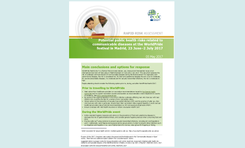 Rapid Risk Assessment: Potential public health risks related to communicable diseases at the WorldPride festival in Madrid, 23 June–2 July 2017