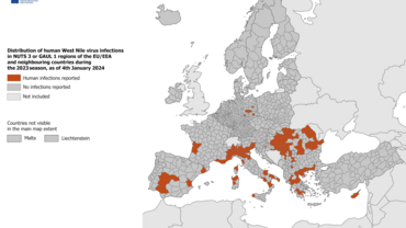 The West Nile virus infections maps aim to provide information about WNV affected areas in a timely manner. Between June and November, ECDC publishes weekly epidemiological updates on West Nile virus infections occurring in the European Union and neighbouring countries.